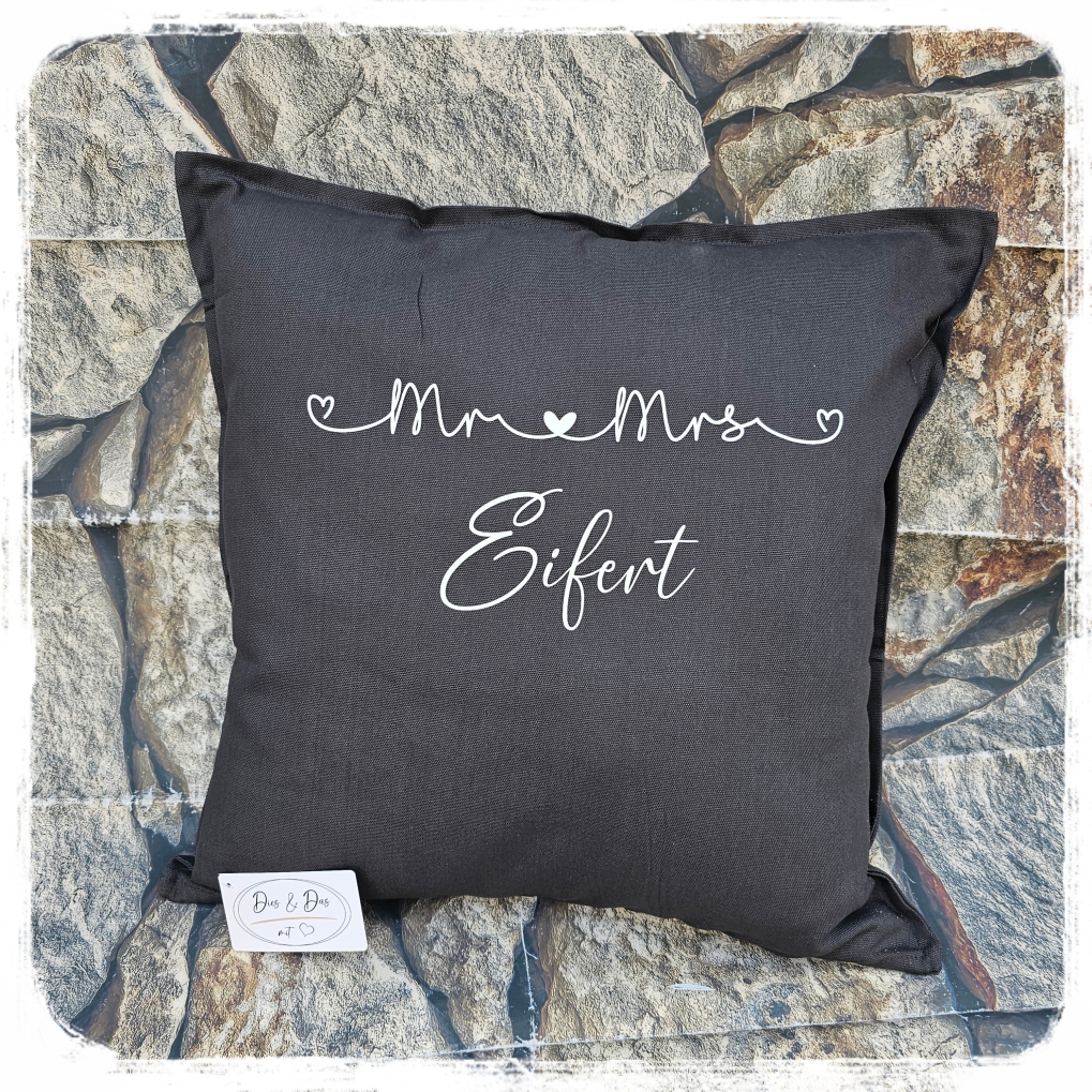 Kissen "Mr & Mrs" je 21,90 €uro (inkl. Füllung)