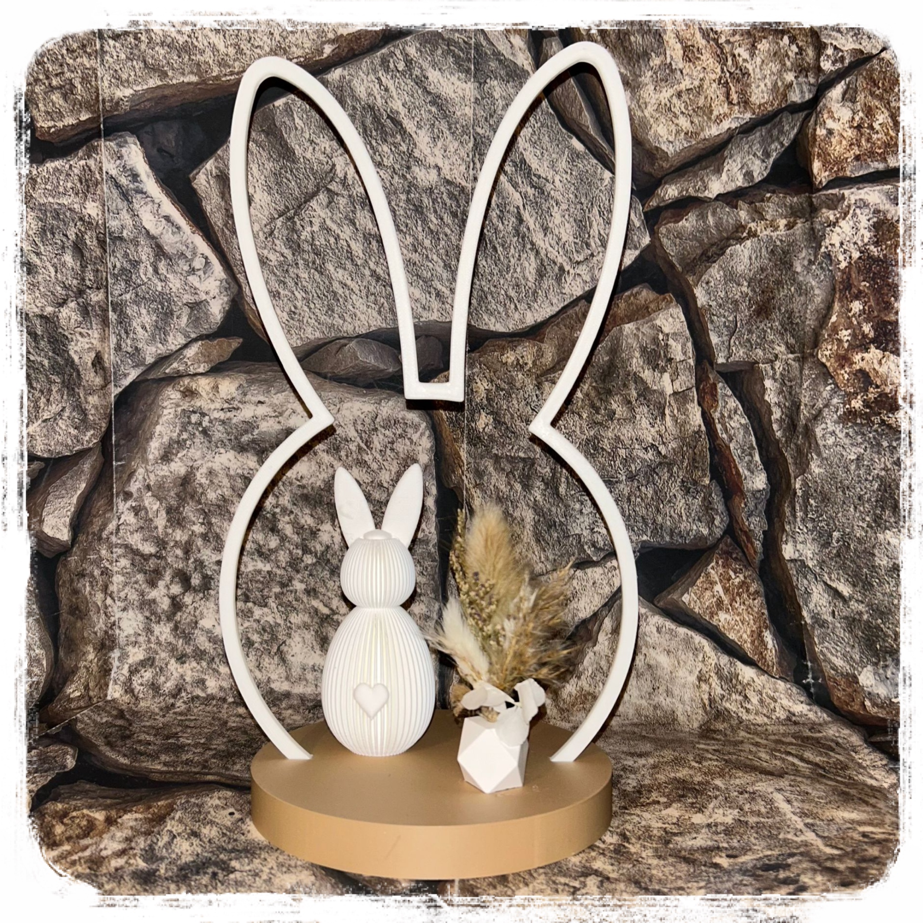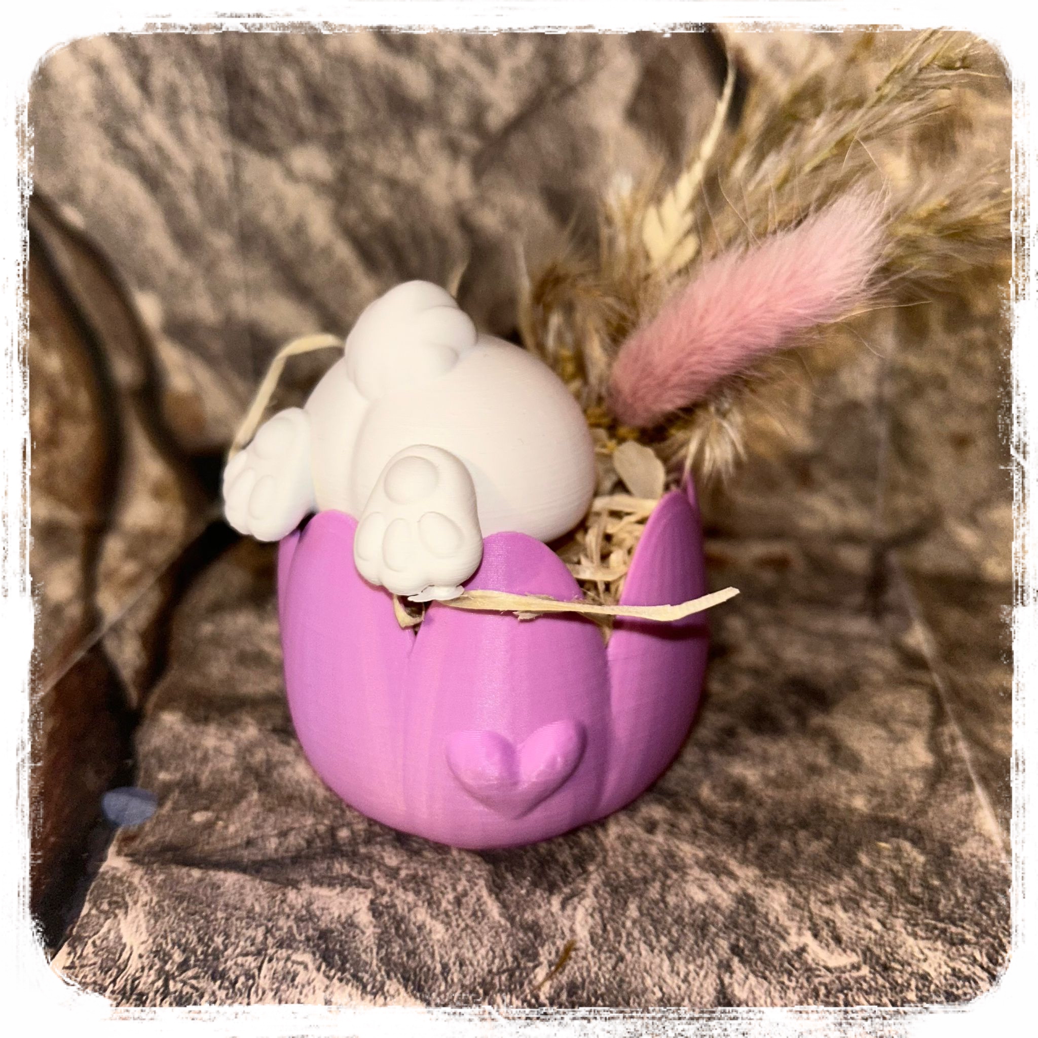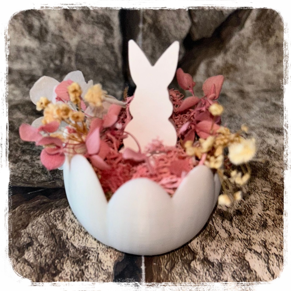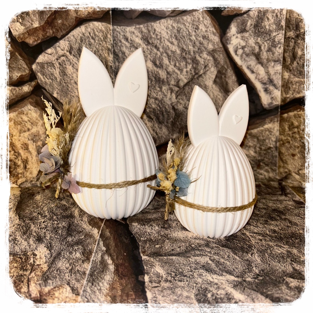 Hasen-Ei im Riffel Look mit Trockenblumen je
