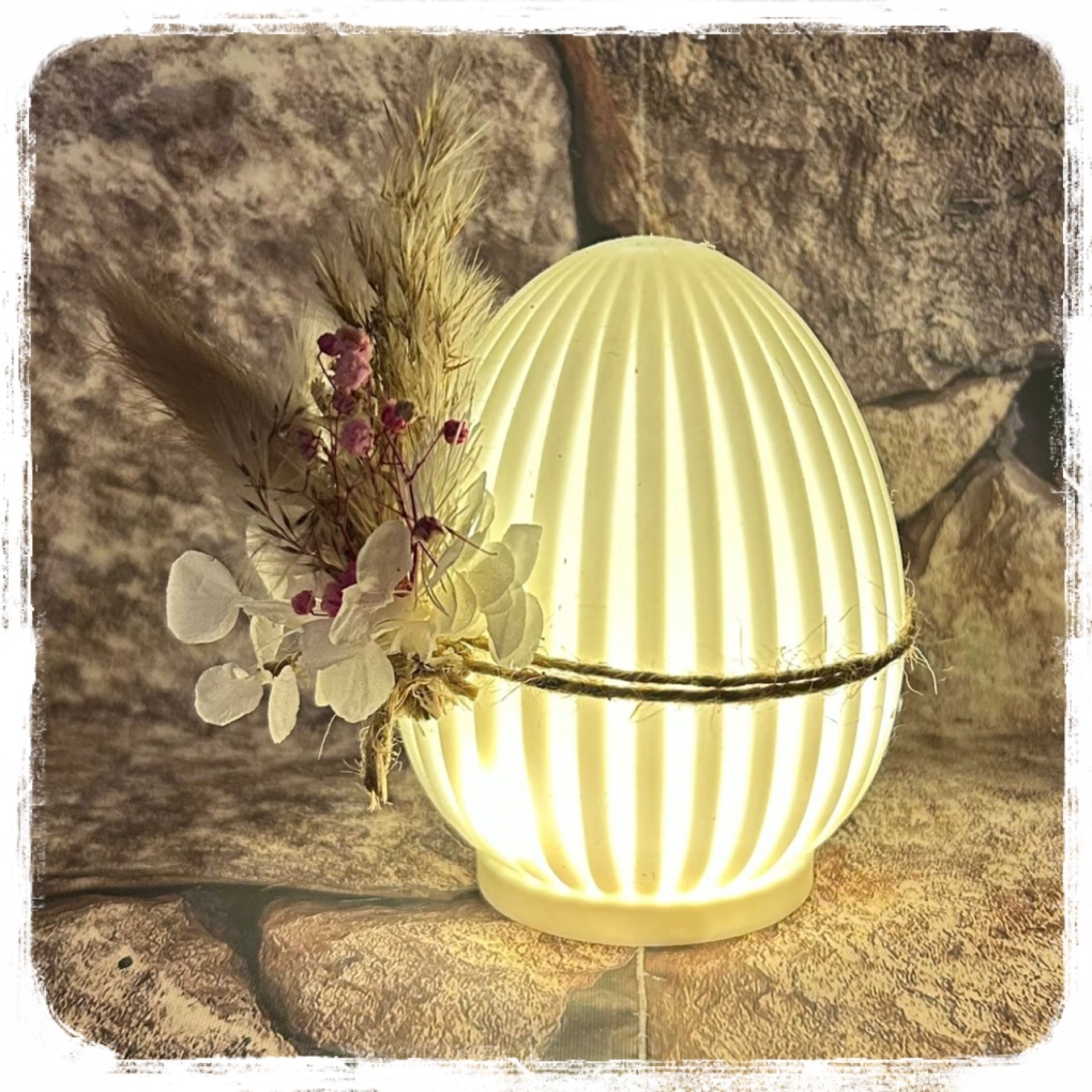 Leucht-Ei im Riffel Look mit Trockenblumen je