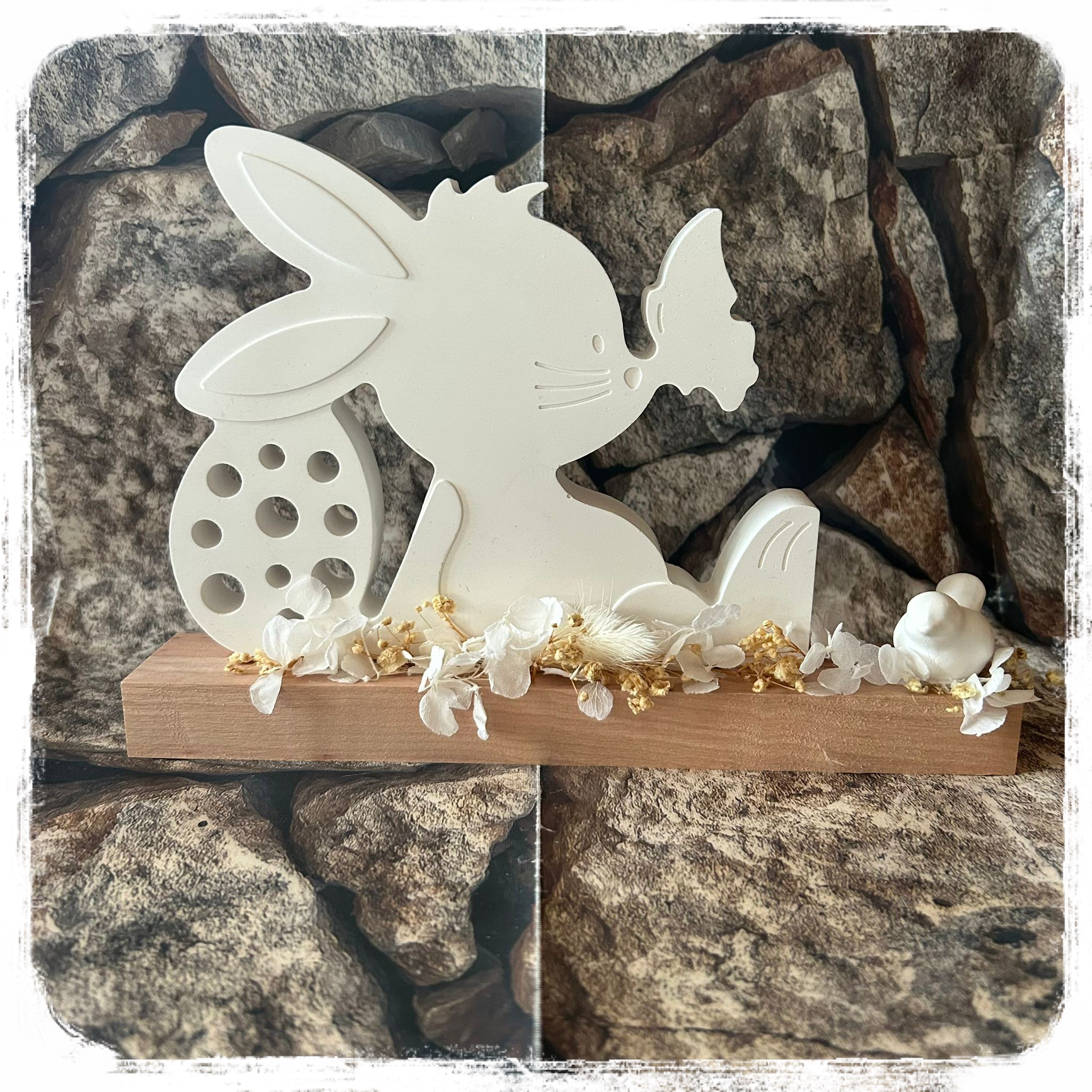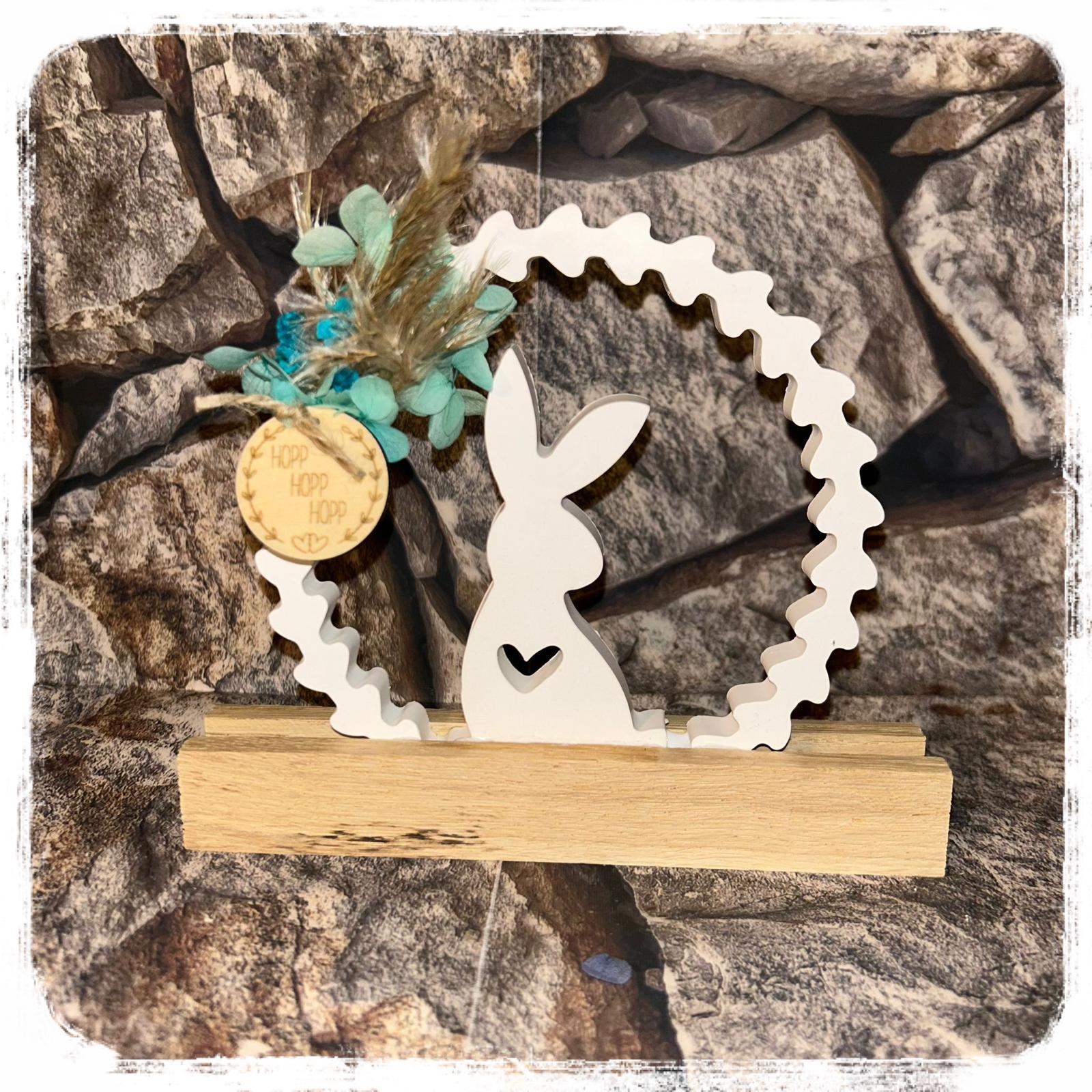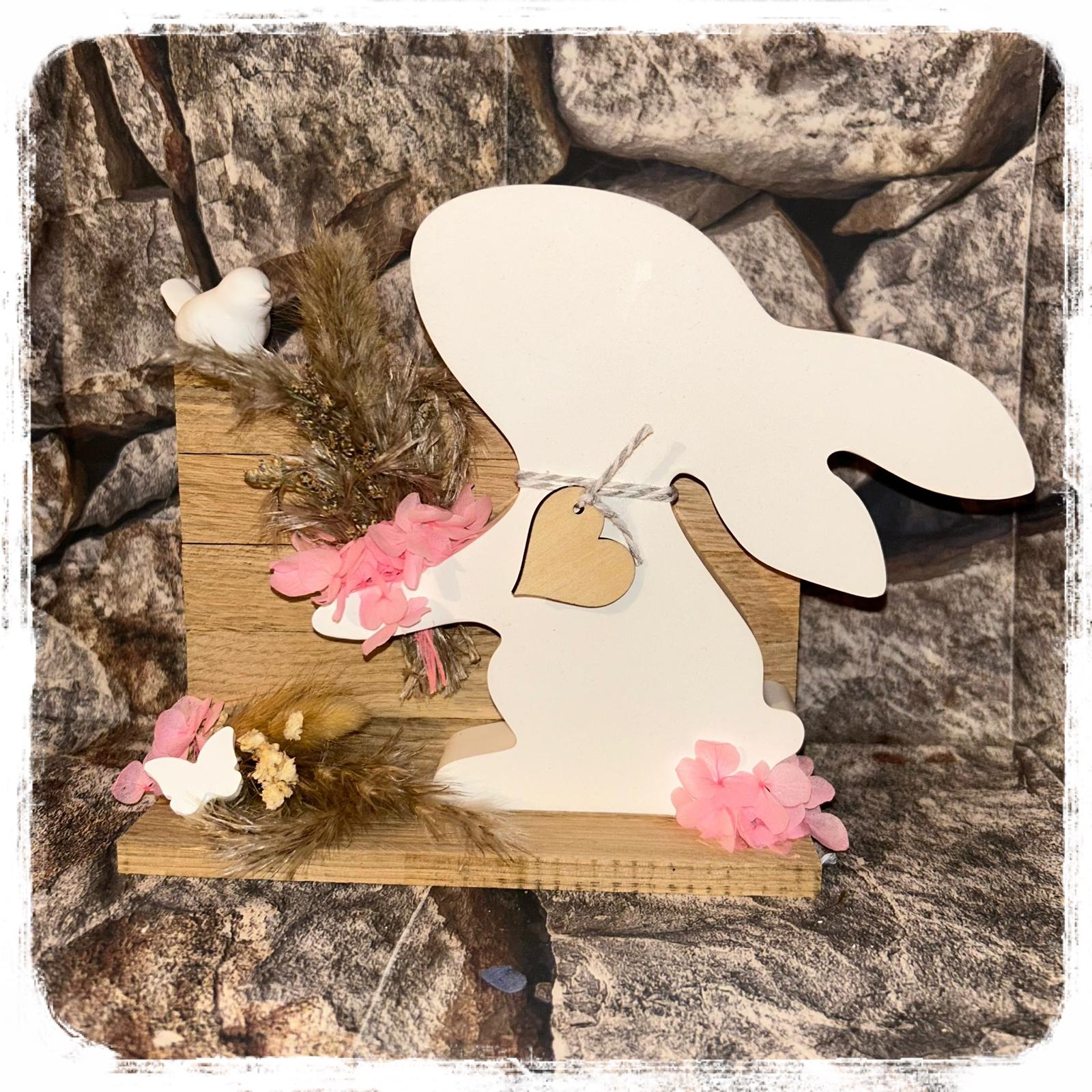 Osterhase mit Trockenblumen auf Holzbrett je 21,90 €uro