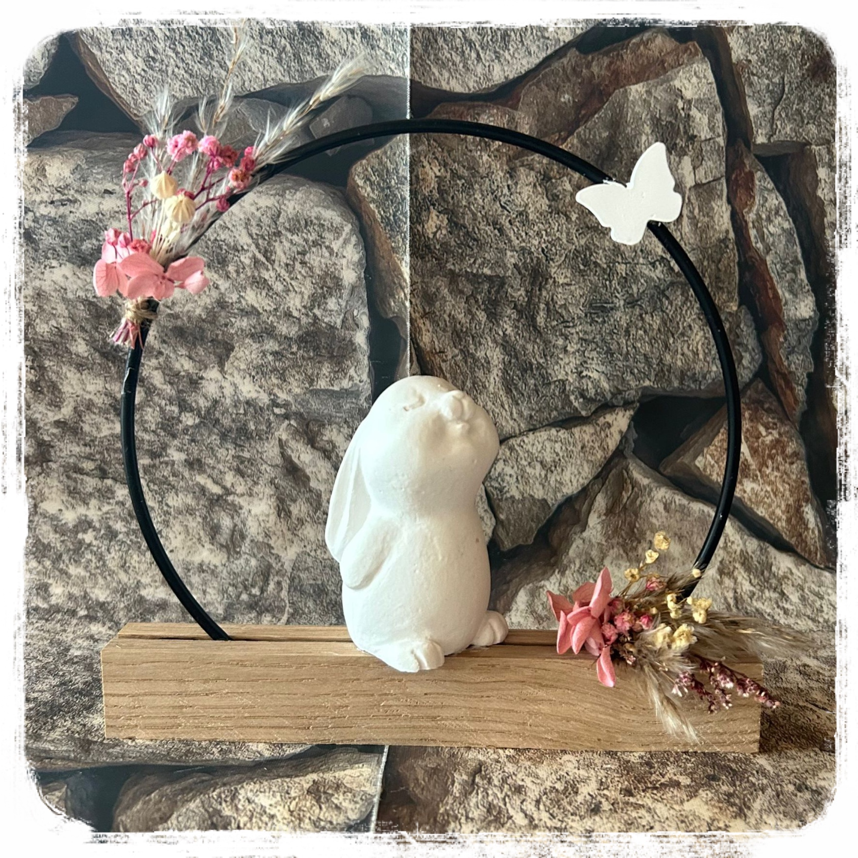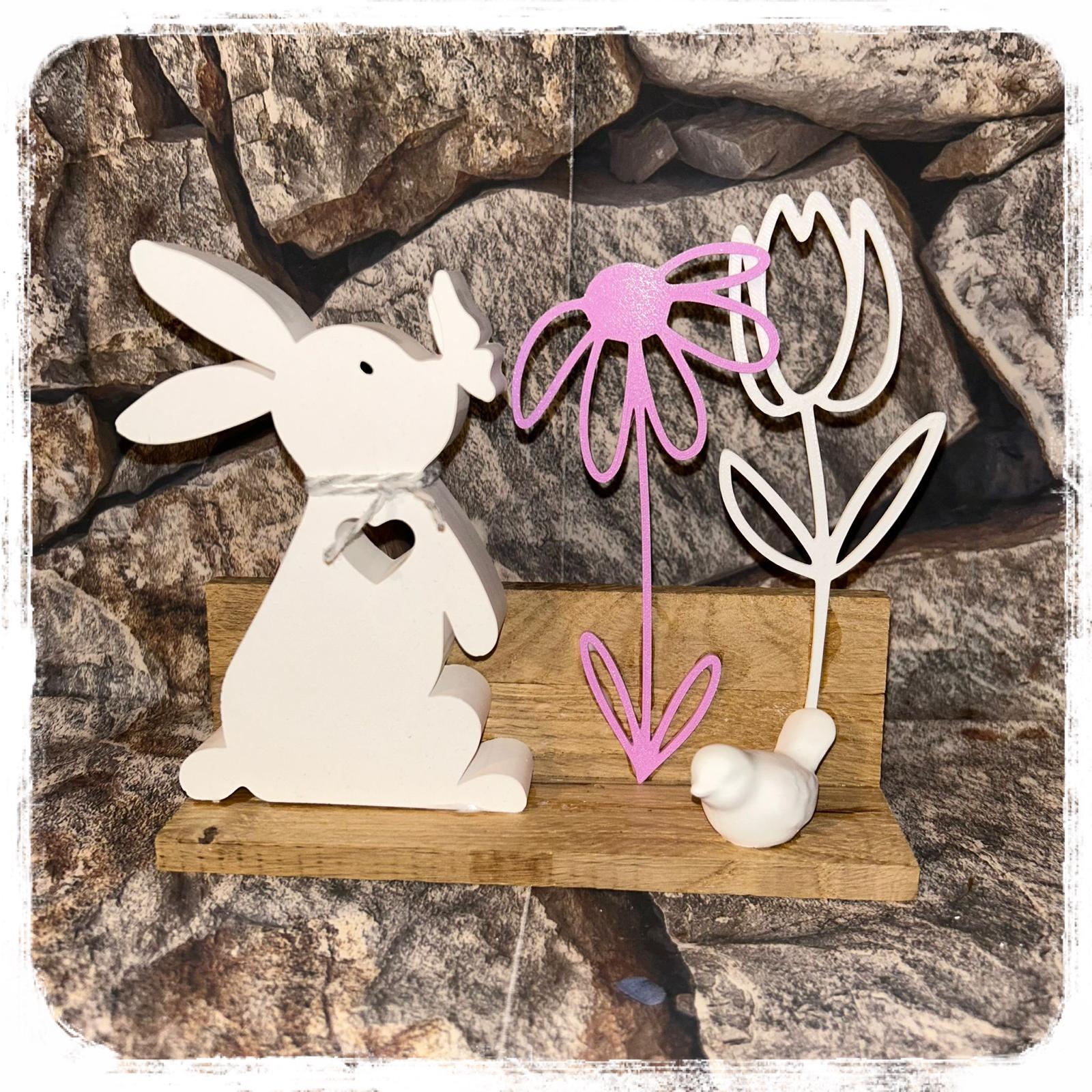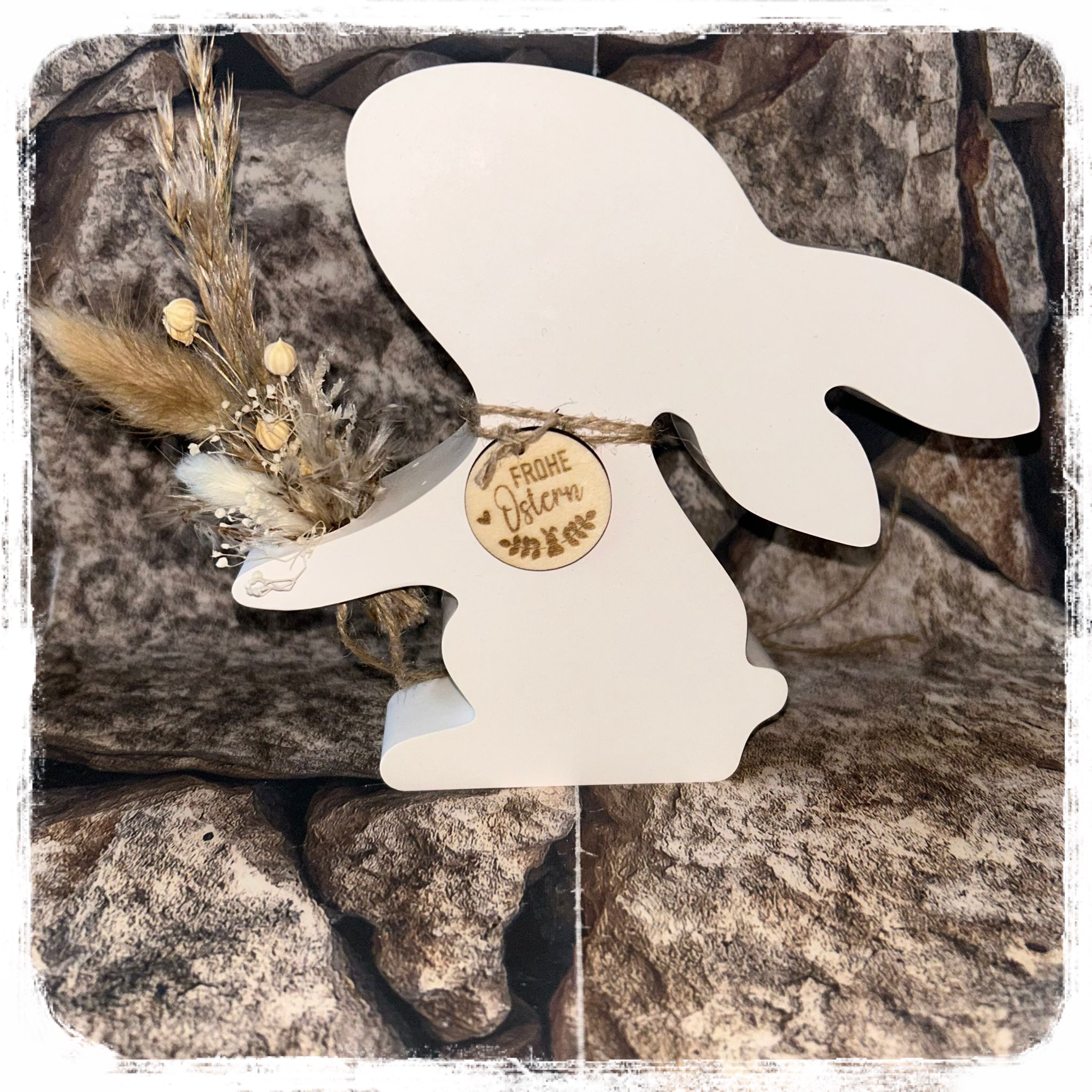 Osterhase mit Trockenblumen auf Holzbrett je 21,90 €uro